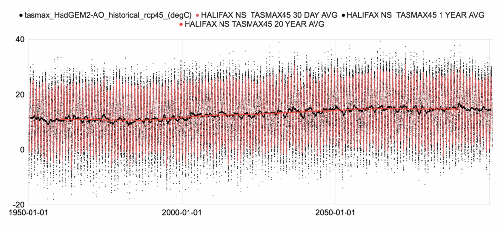 Figure 10 shows the Hadley climate research institute model run for the RCP4.5 emission scenario at Halifax Nova Scotia.
